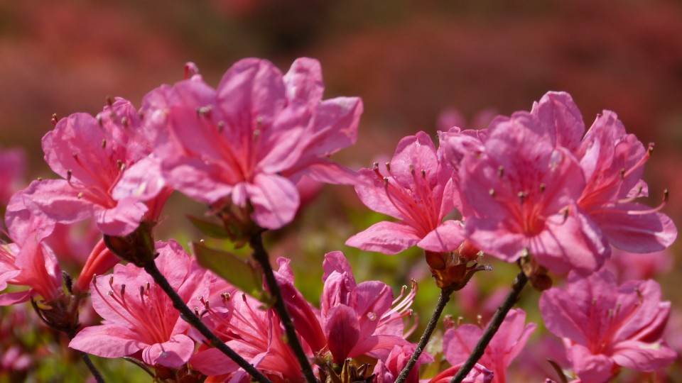 葛城山は 『ひと目100万本のヤマツツジ』 で有名ですが、ここでは葛城山に咲く 『ツツジの種類』 についてお話ししてみましょう。 まずは最も多いのが朱色の 『ヤマツツジ』。 『自然つつじ園』の圧倒的スケールに 初めて来られた人は共通して驚かれています。 そんな風景の中に所々に淡いピンク色の 『モチツツジ』。 そして、ヤマツツジとモチツツジの自然交配種である 色鮮やかな濃いピンク色の 『ミヤコツツジ』が観察されます。 そして葛城山の地図に表記されている 『レンゲツツジ』はオレンジ色で 『登山道のメインストリート』 から御所市を見下ろす場所に移動植栽されたものでしょう、 少しだけ観察できます。もともとは山中には沢山咲いていたものと推測されます。 そして自然研究路をはじめ、登山道でもみかける 『コバノミツバツツジ』。 この種は『おしべ』は5つですが、 似た種類として『おしべ』が3つのものを 『ミツバツツジ』といいます。 いずれにしてもこの2種類は淡いピンク色で、つつじの中では最も早く咲く種類です。 |